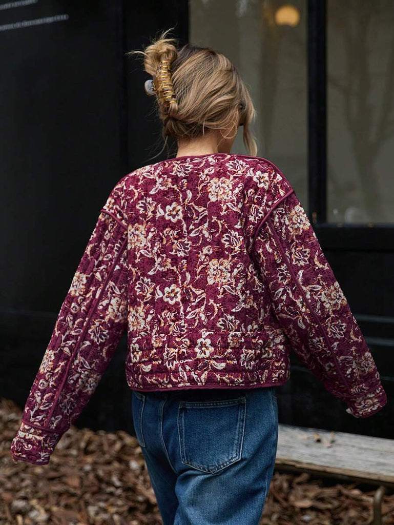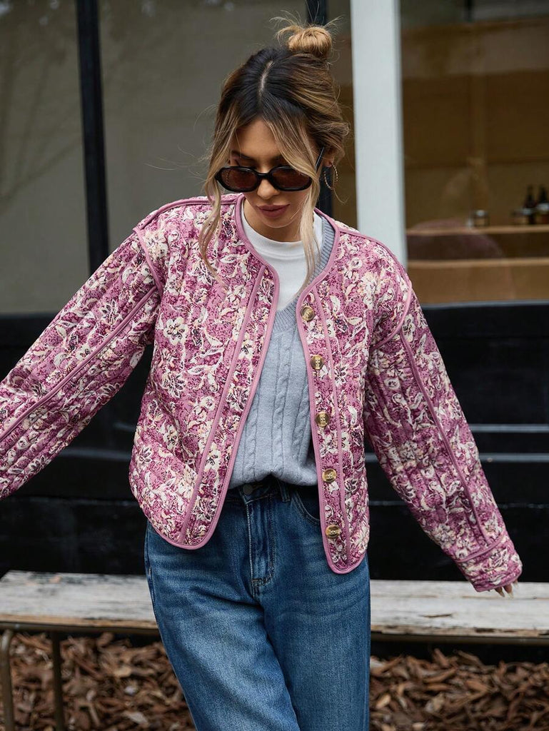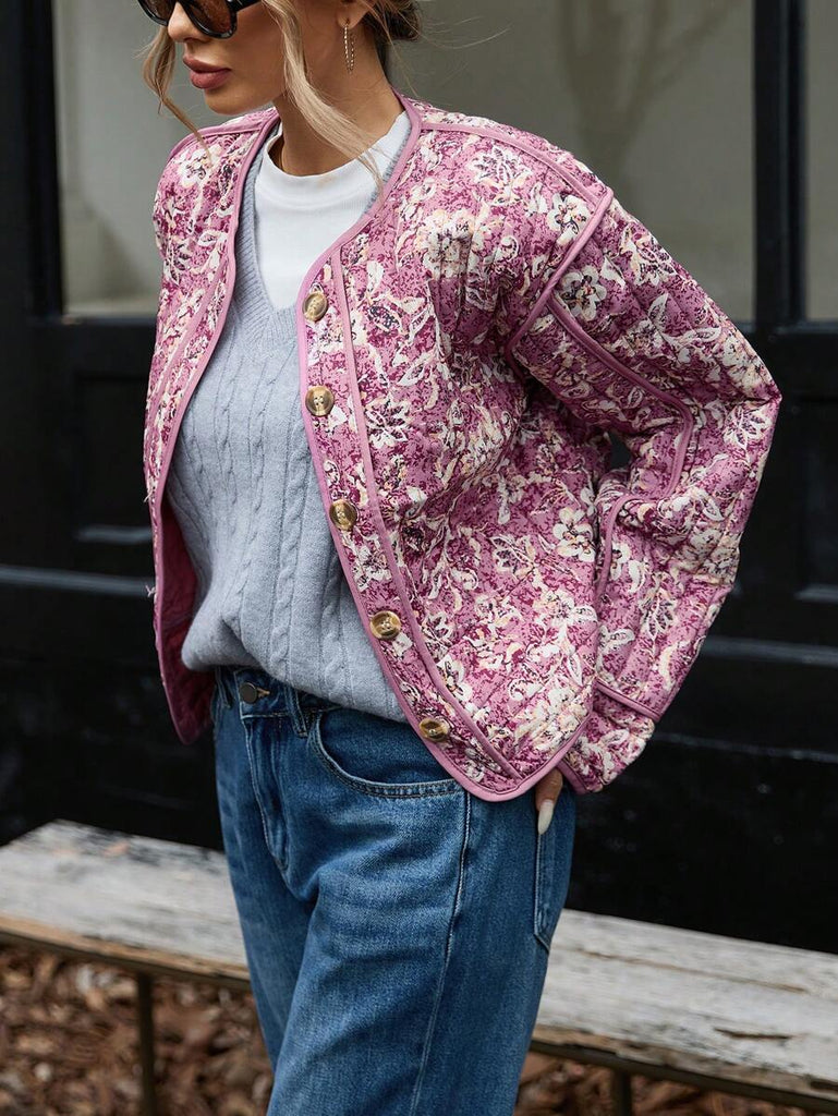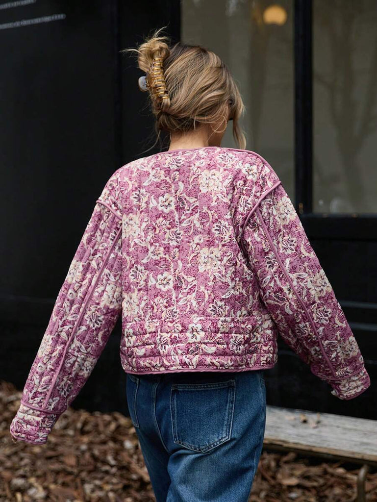 Manteau Matelassé Imprimé Floral Style Décontracté Manches Longues Avec Poches Manteau Matelassé Imprimé Floral Style Décontracté Manches Longues Avec Poches