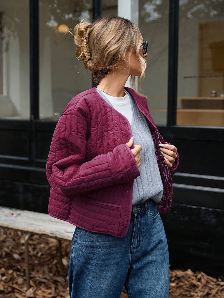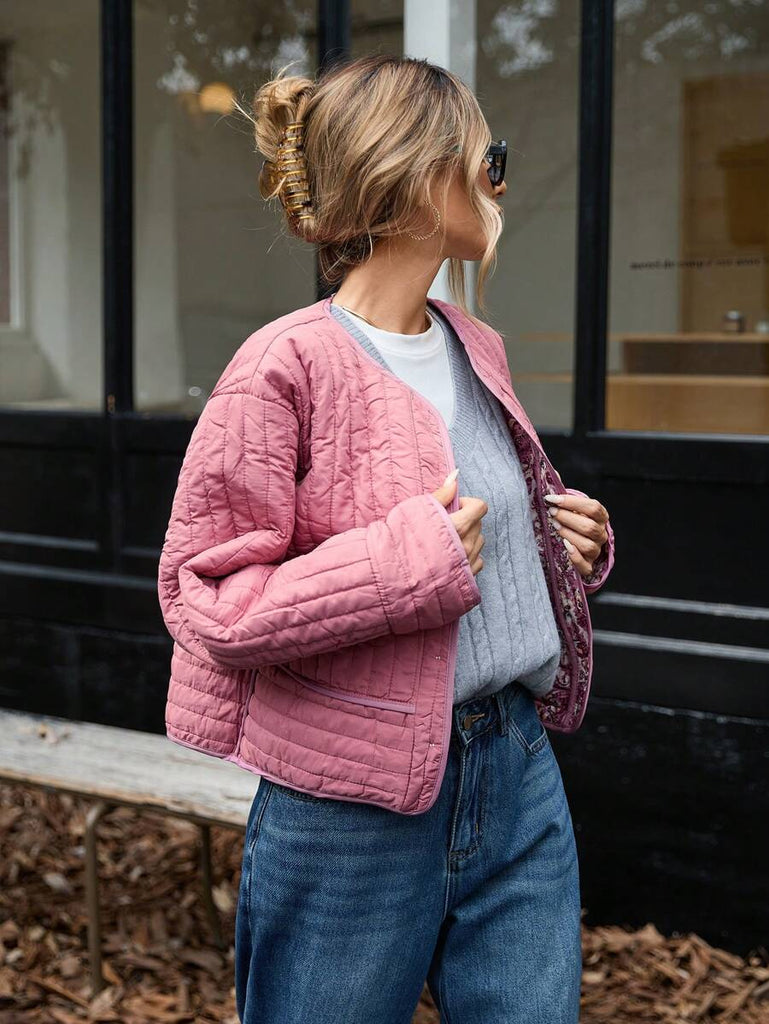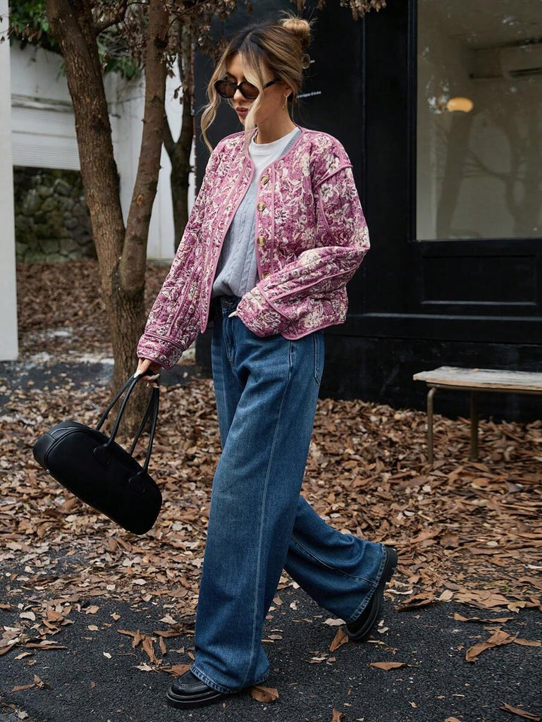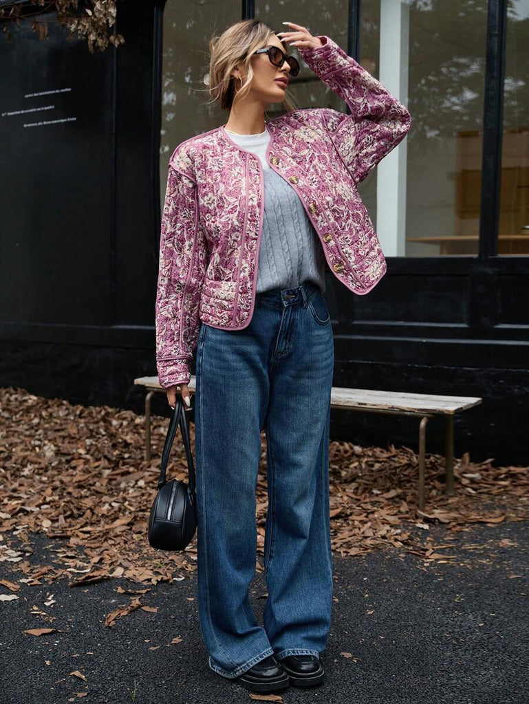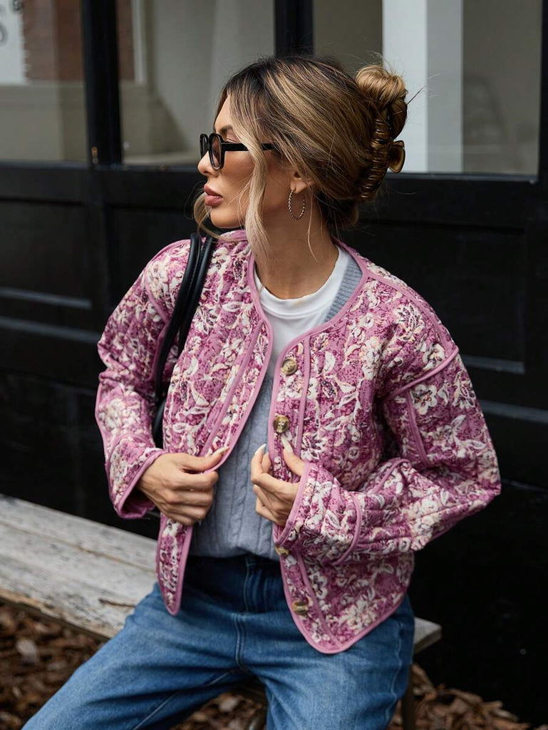 Son motif floral intégral sur fond rose bonbon apporte une touche de fraîcheur à la grisaille automnale, tandis que la combinaison de la fermeture éclair facile et des boutons devant offre un double mode de fermeture, idéal pour s’adapter rapidement aux variations de température.
