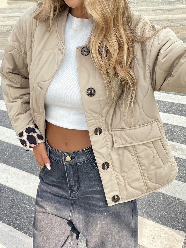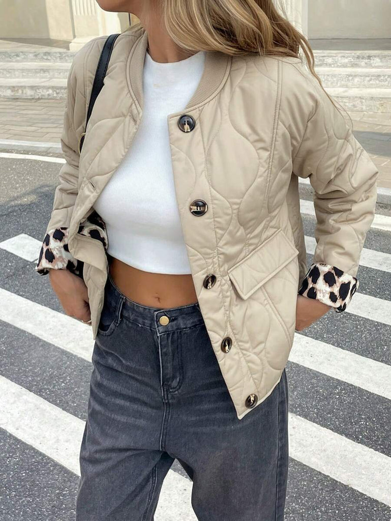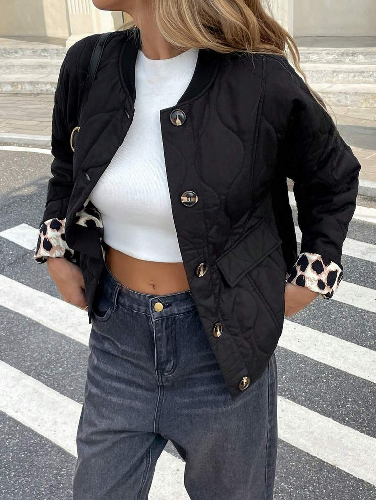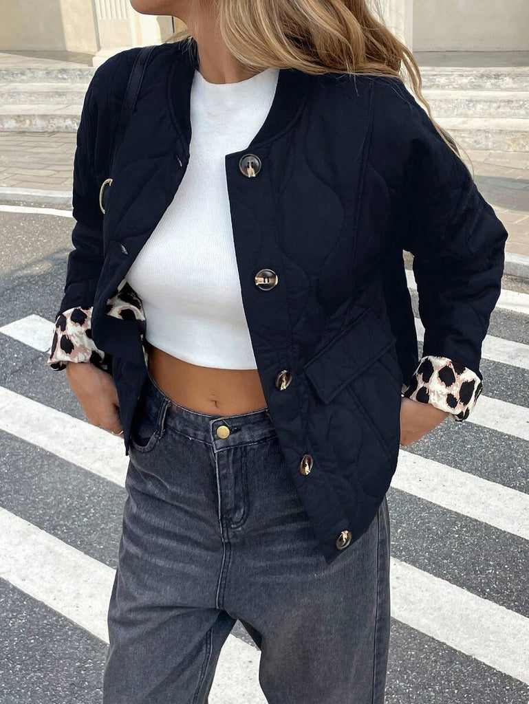 Conçu spécialement pour les températures fraîches de la fin de l’automne (10-17°C), il offre la protection légère parfaite pour rester stylée sans jamais avoir trop chaud. L’absence de doublure rend la veste facile à superposer, tandis que le tissu en polyester 100 % tissé assure une sensation de douceur, avec un effet matelassé qui structure élégamment la silhouette.