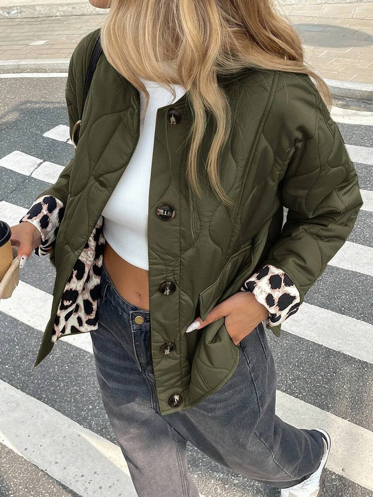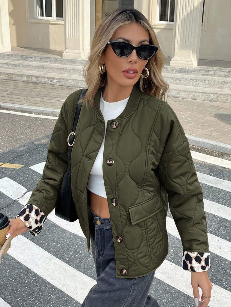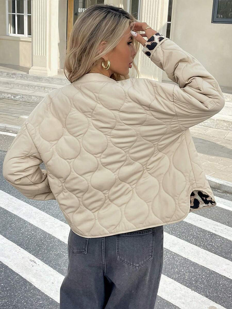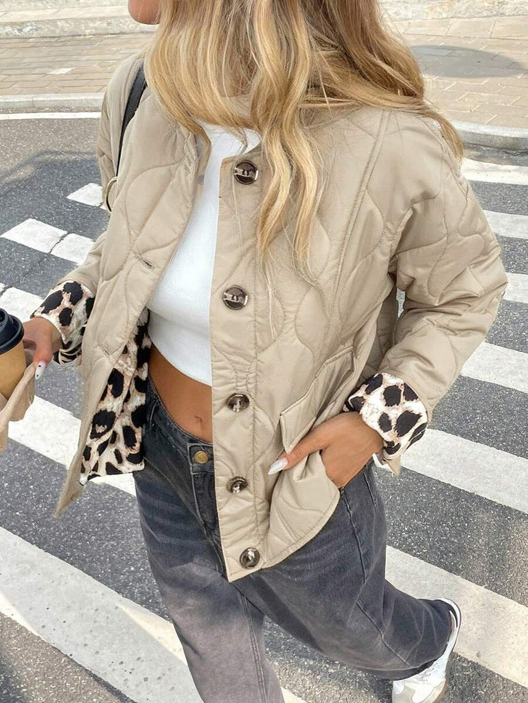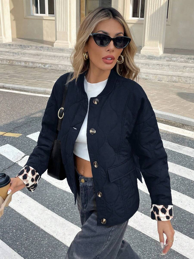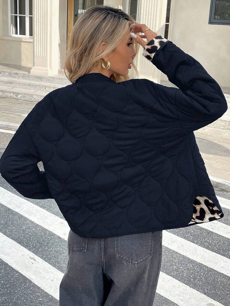 Manteau Matelassé Casual Femme Imprimé Léopard Patchwork Manches Longues Manteau Matelassé Casual Femme Imprimé Léopard Patchwork Manches Longues